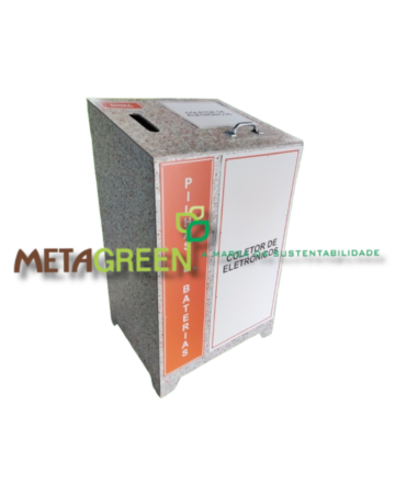 Coletor ecológico para descarte de pilhas, baterias e eletrônicos, bocal de descarte de pilhas e baterias e uma tampa na parte superior...